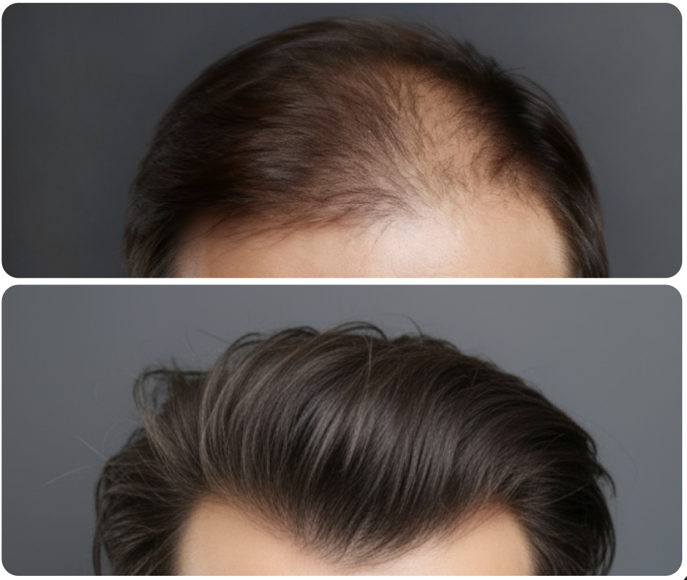 The scalp environment is fully rebalanced. Thinning areas look denser, shedding is minimal, and new baby hairs become clearly visible. Confidence returns as your hairline and crown look noticeably stronger.